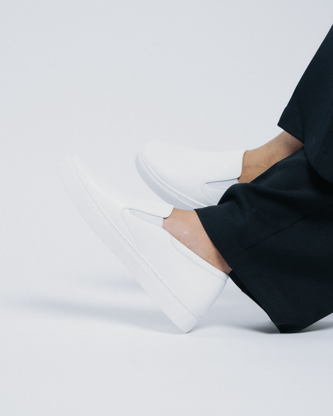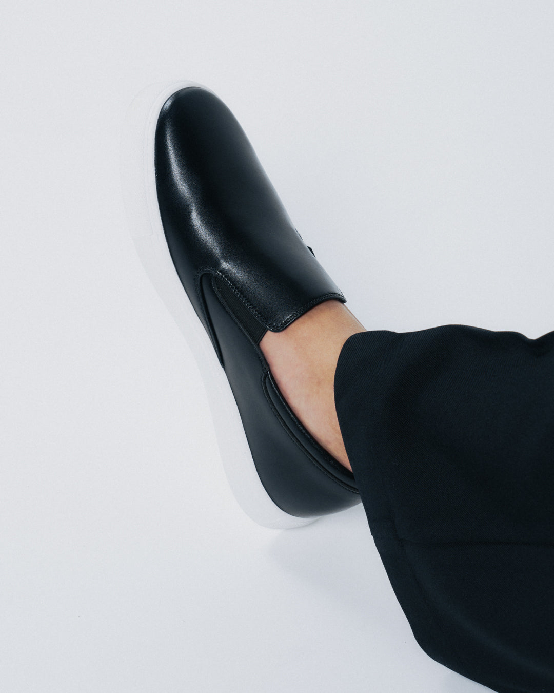 The CLASSIC sneaker, a high-quality everyday sneaker that subtly adds 5.5cm to your figure, now comes in a slip-on style. This pair features a simple yet authentic design, born from a minimalist aesthetic.