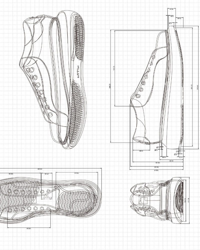 FILLINは、既存の木型を流用せず、スタイルアップシューズとして理想的なフォルムを追求するため、木型そのものから独自に開発しています。