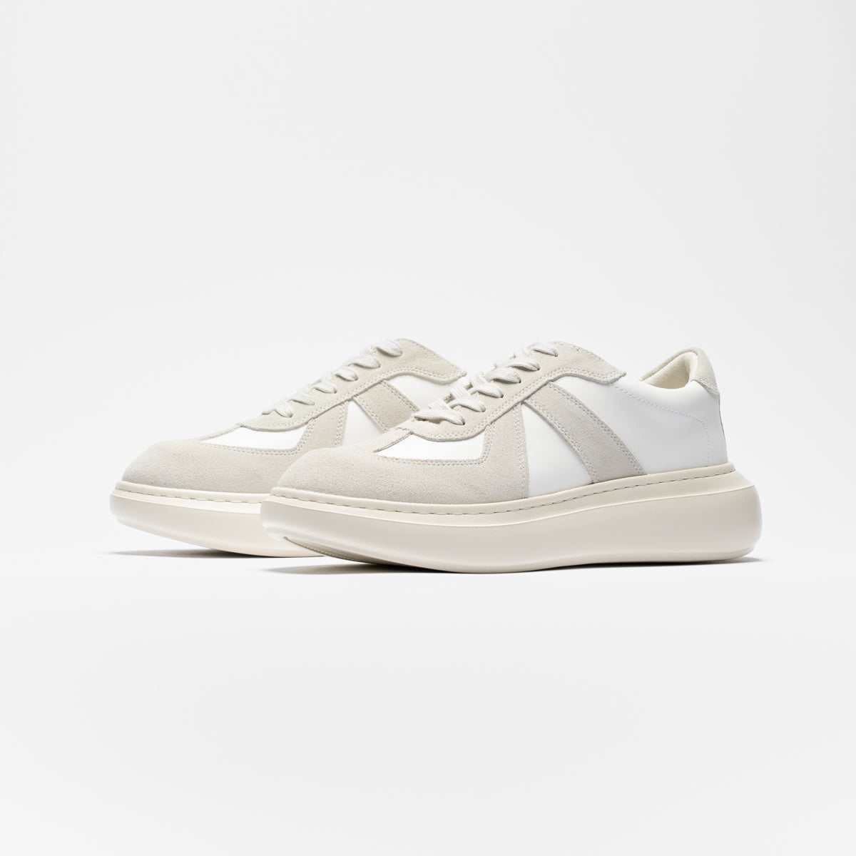 従来レザーの弱点を改善しつつ風合いに優れたマイクロファイバーレザーや、ポリウレタン素材でできた厚さ2cmの低反発インソールを採用。