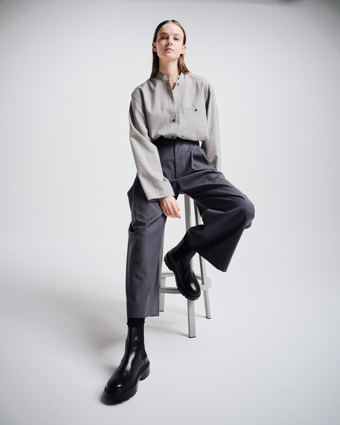 職人によって一つずつ丁寧に縫製され、鋭く研ぎ澄まされた輪郭は力強い存在感と、光をほどいていくような繊細さを放ちます。「UNOS」の緊張感ある造形はあらゆるスタイルを引き締めるように調和させます。